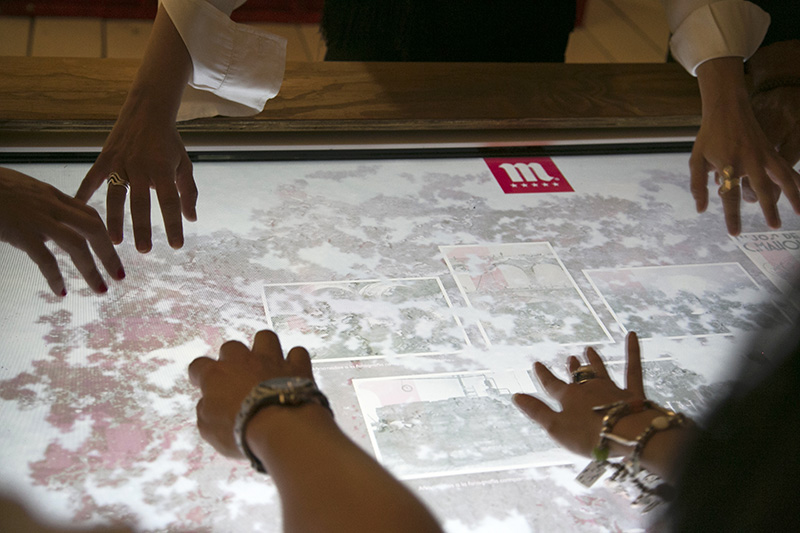 • Forma de navegación. Ninguno de los apartados o aplicaciones muestran botones. Cada bloque se inicia apoyando en la mesa una botella y se navega tocando los elementos que van apareciendo.